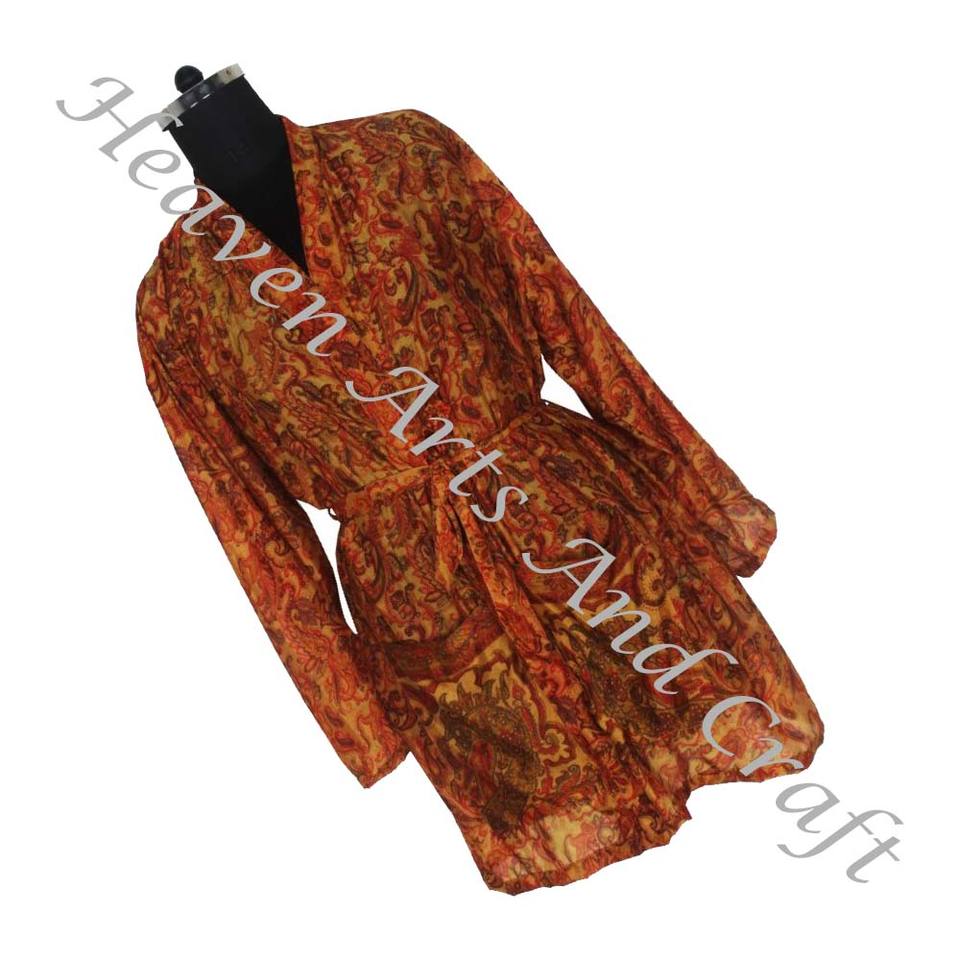 KS008 Antique Floral Silk Vintage Sari Kimono Short-Style Jacket Hot Charming Look Bohemian Style Vintage Sari Kimono Short