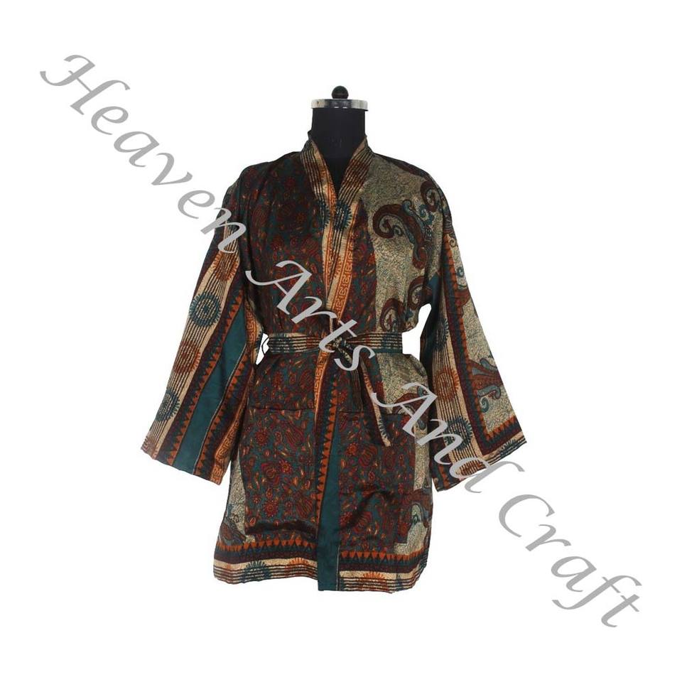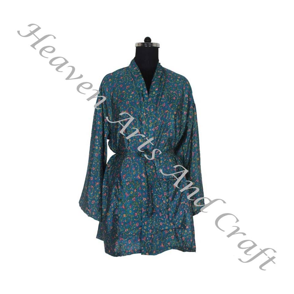 KS009 Bohemian Vintage Silk Sari Kimono Women's Sexy Sleepwear for Summer Beach Wear Bikini Cover Wholesale Silk Vintage Sari