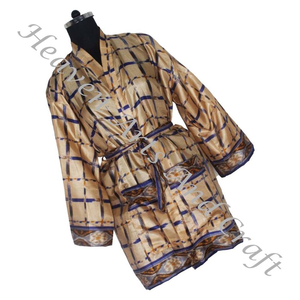 KS011 Beautiful Vintage Silk Sari Floral Jacket Bohemian Winter Short Hand Made With Belt Closer Vintage Sari Kimono Short