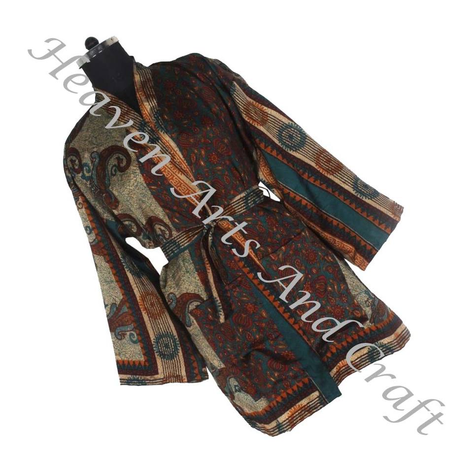 KS012 Antique Floral Silk Vintage Sari Kimono Short-Style Jacket Hot Charming Look Bohemian Style Vintage Sari Kimono Short