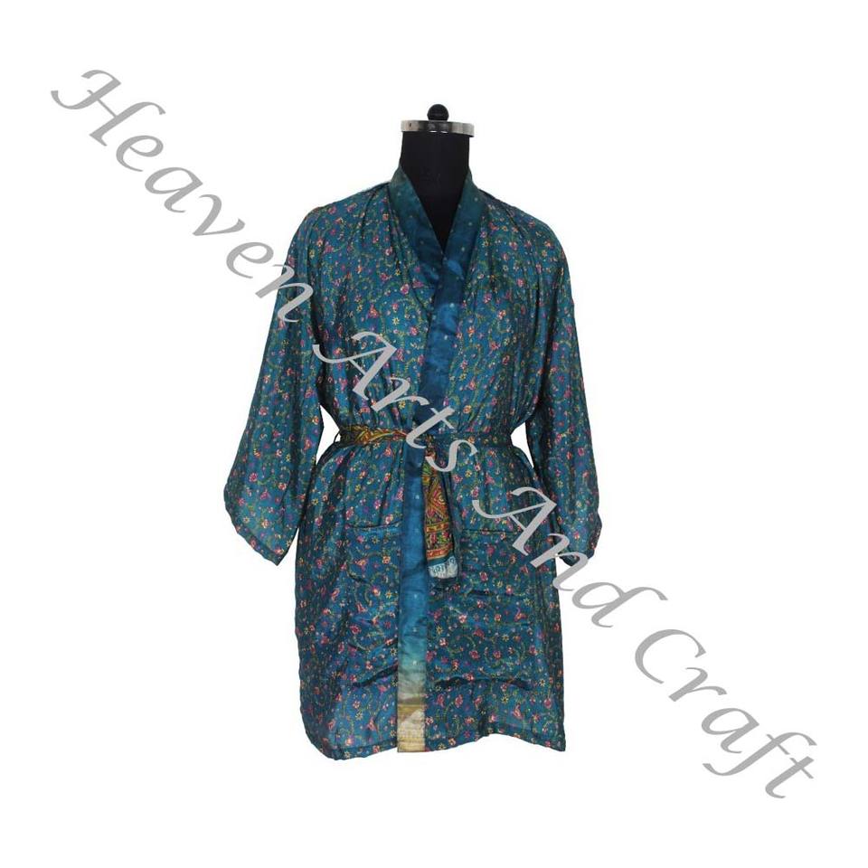 KS012 Bohemian Silk Vintage Sari Kimono Short Robe - Summer Beach Wear Bikini Silk Cover up - Wholesale Silk Sari Vintage Sari
