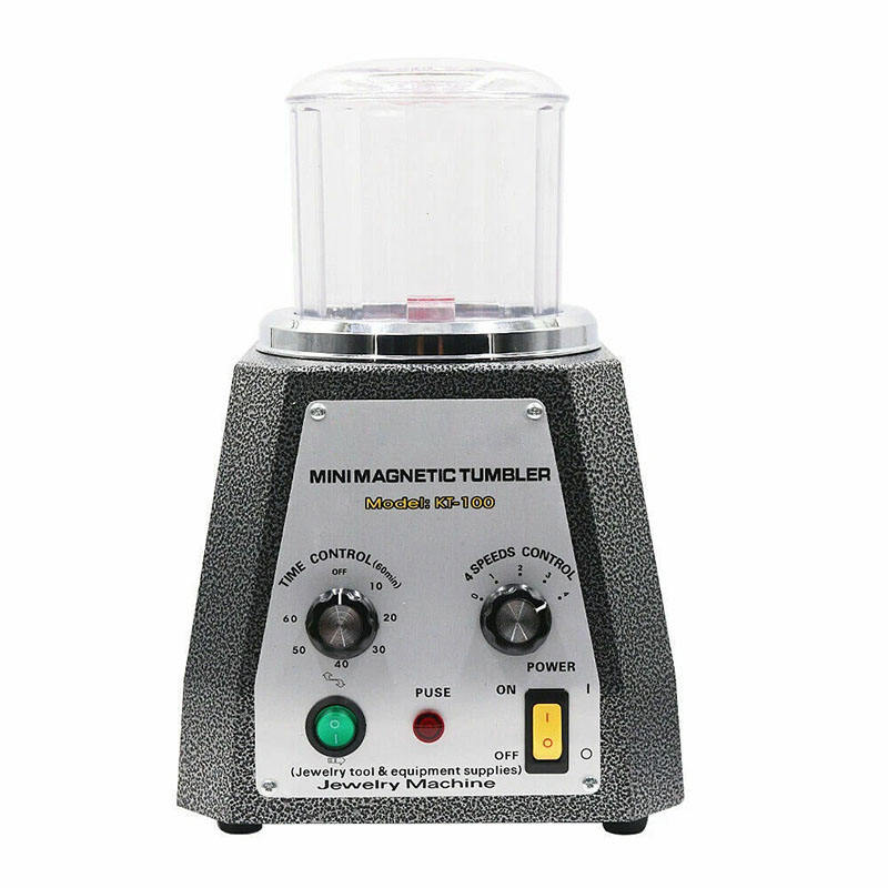 KT-100 Magnetic Tumbler Polisher 200W Mini Jewelry Polishing Machine with 100mm Barrel 2000 RPM for Metal Deburring Finishing