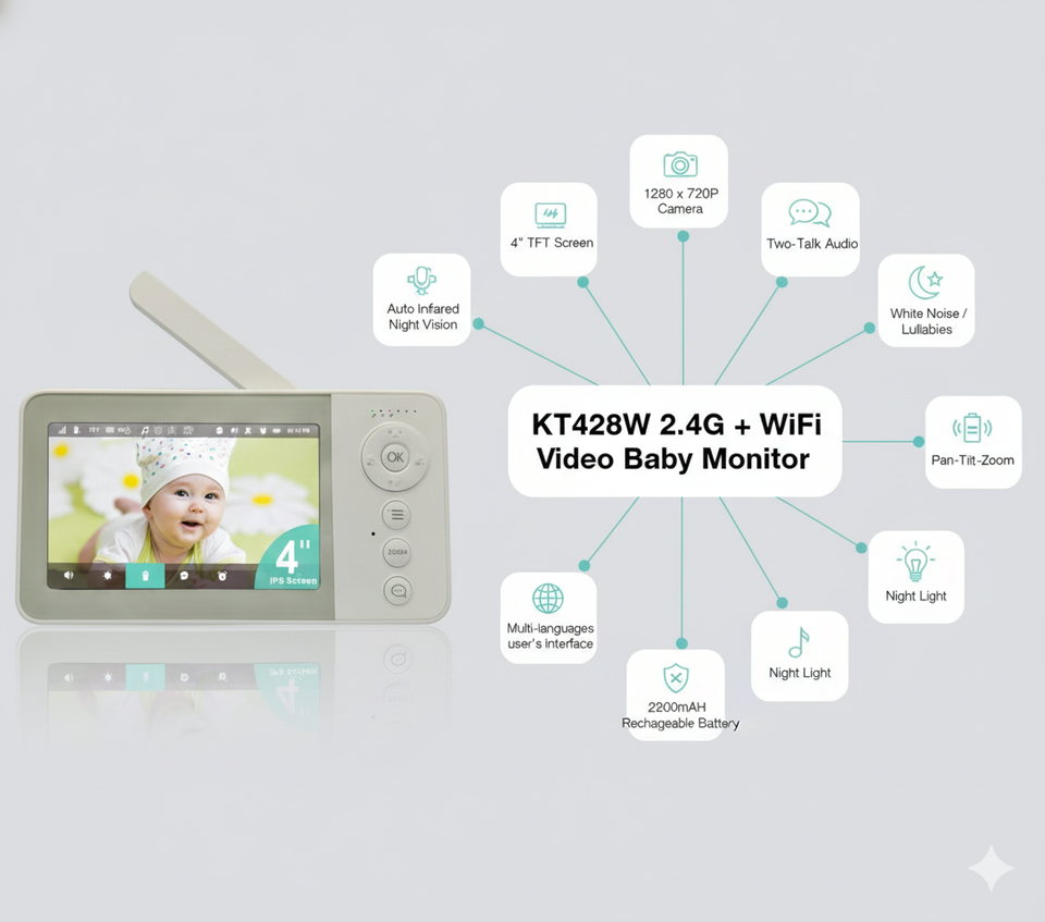 KT-428W Long Range 1200ft Wireless Baby Monitor 2.4GHz FHSS Private Signal 390m Transmission No WiFi Interference Free Camera