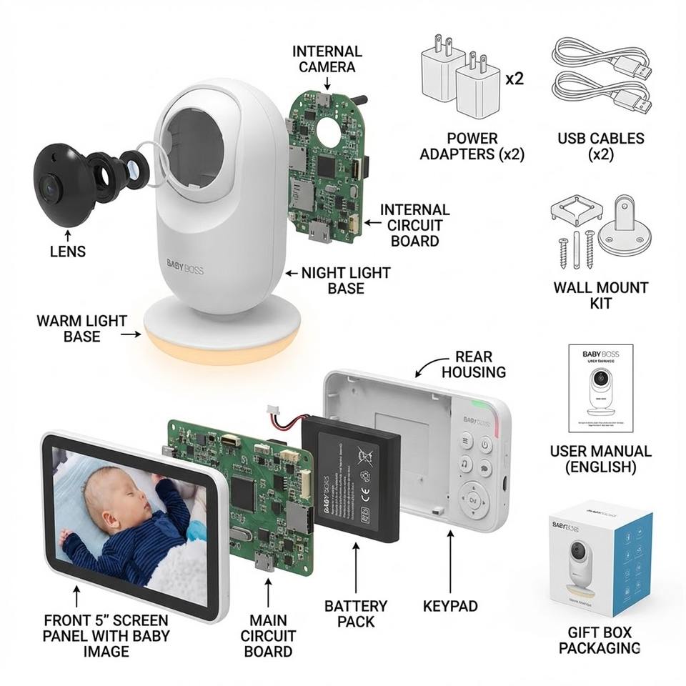 Night Vision, Two-Way Audio, Temperature monitoring, Feeding Reminder, Video Recording, Wall Mountable, 2 white noiseSpecial Features
