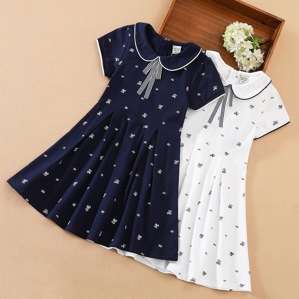 KUYEEBEAR Baby Girl Shirt Dress 2021 Girl Summer Dress Vestidos Cotton Little Girls Dresses De Verano Short Sleeve 6 to 14 Years