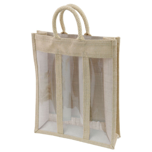 KVR Wholesale Drawstring Tote White Black Large Print Vinery Shopping Linen Burlap Jute 3 bottle Bag Custom Logo
