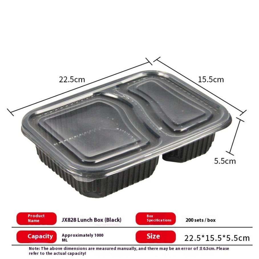 KX 828 Black PP Disposable Rectangular Lunch Box with Lid 1-3L Capacity Thick Compartment for Microwave Use