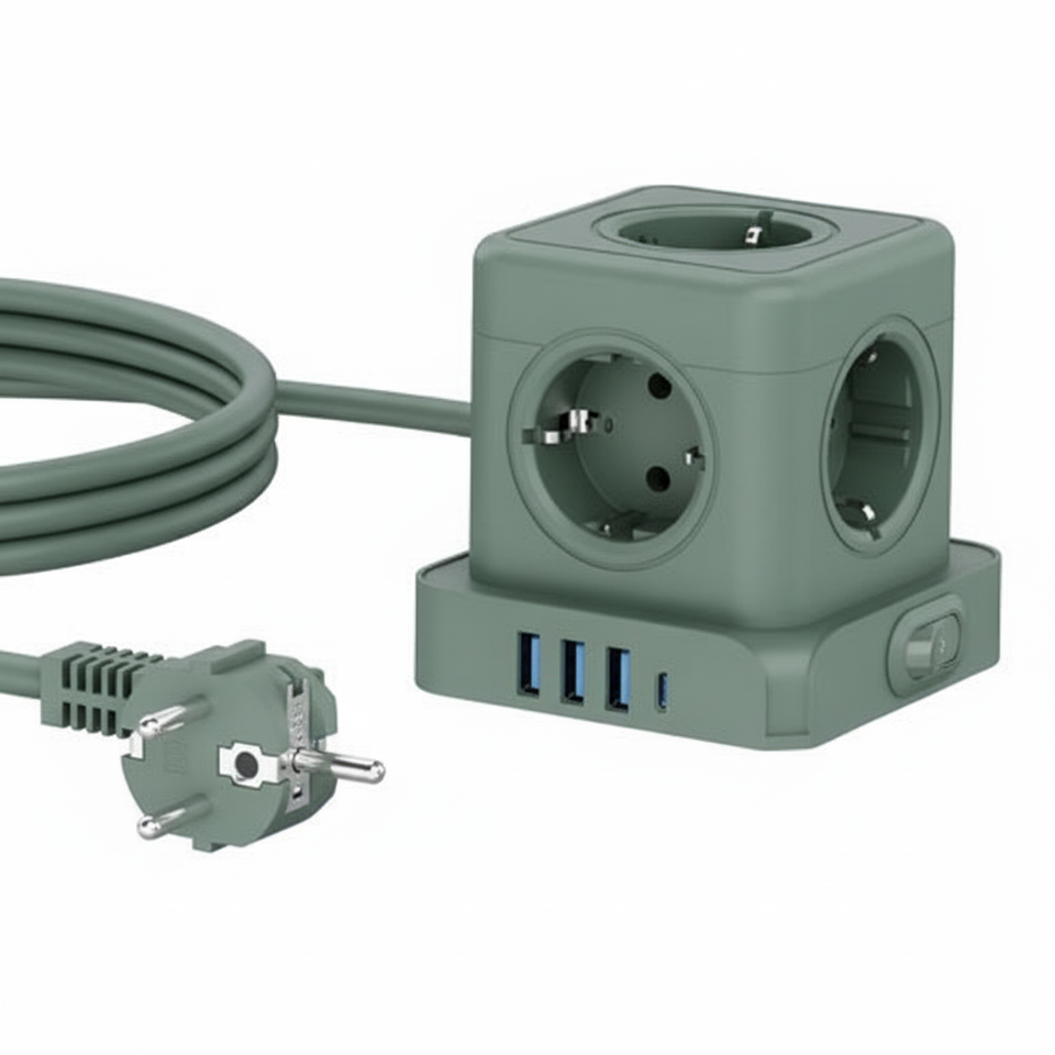 Kabbol All In One Travel Adapter 5 Eu Outlets With 5 Usb Ports 30W Output Universal Portable Cube Socket For Europe