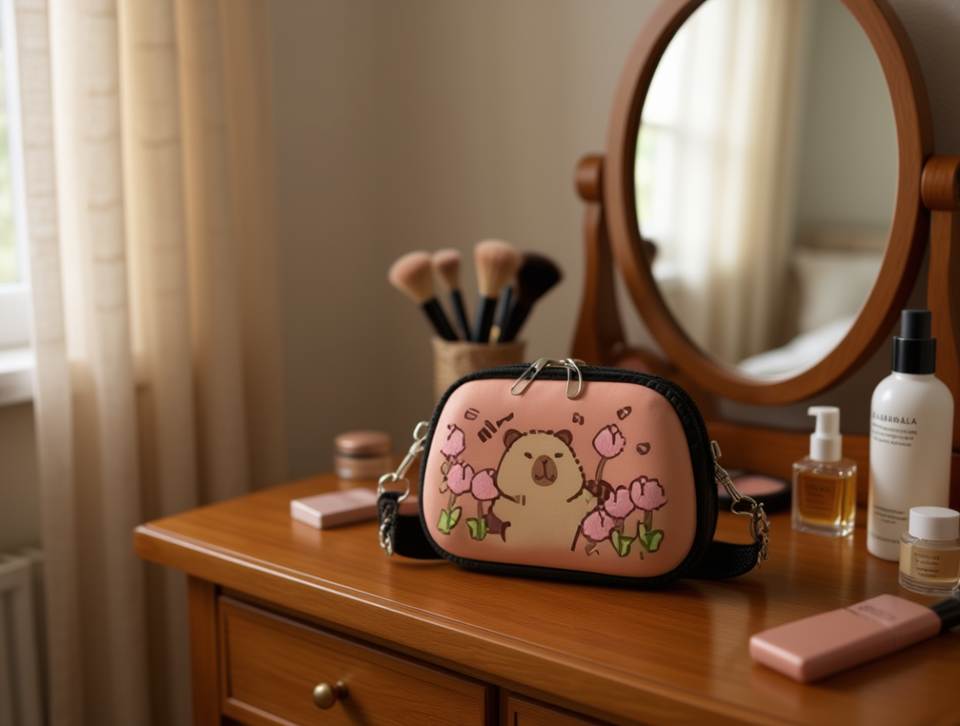 Kabibala Cartoon Semi Circular Hard Shell Cosmetic Bag Small EVA Zipper Closure