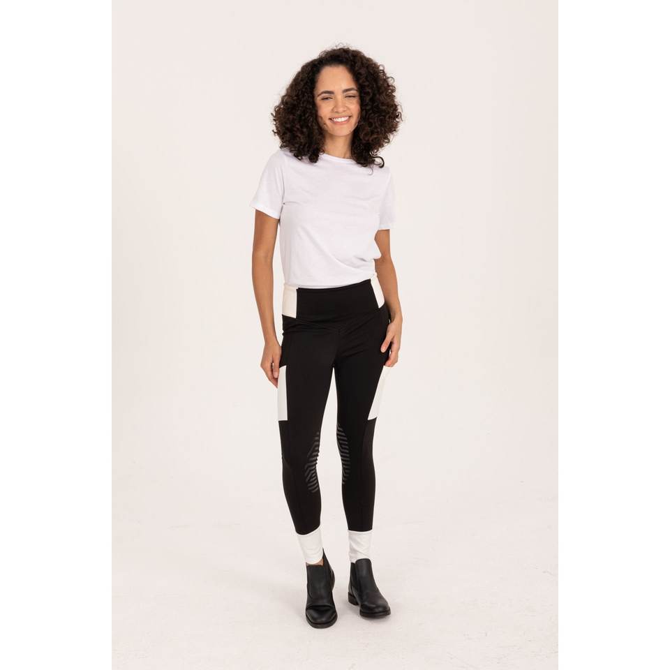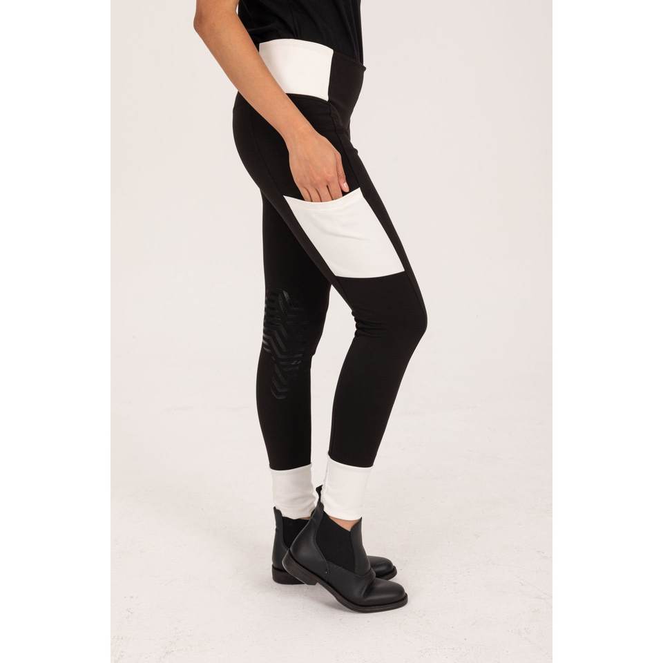 Kadın Siyah Taytı Siyah Beyaz Cep Silikon Dolgulu Detaylı Binici Kıyafetleri