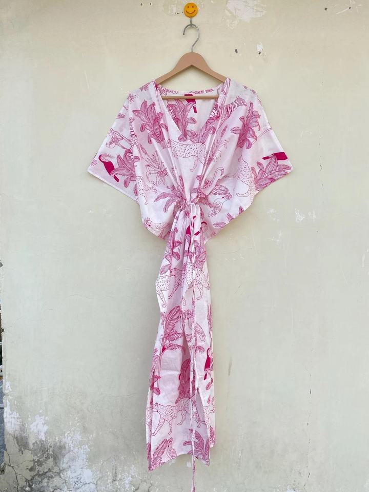 Plus Size Maxi Kaftan Dress Beach Cover Ups Block Printed Chiffon Sleepwear Elegant Sleepwear for Beach or Home Use