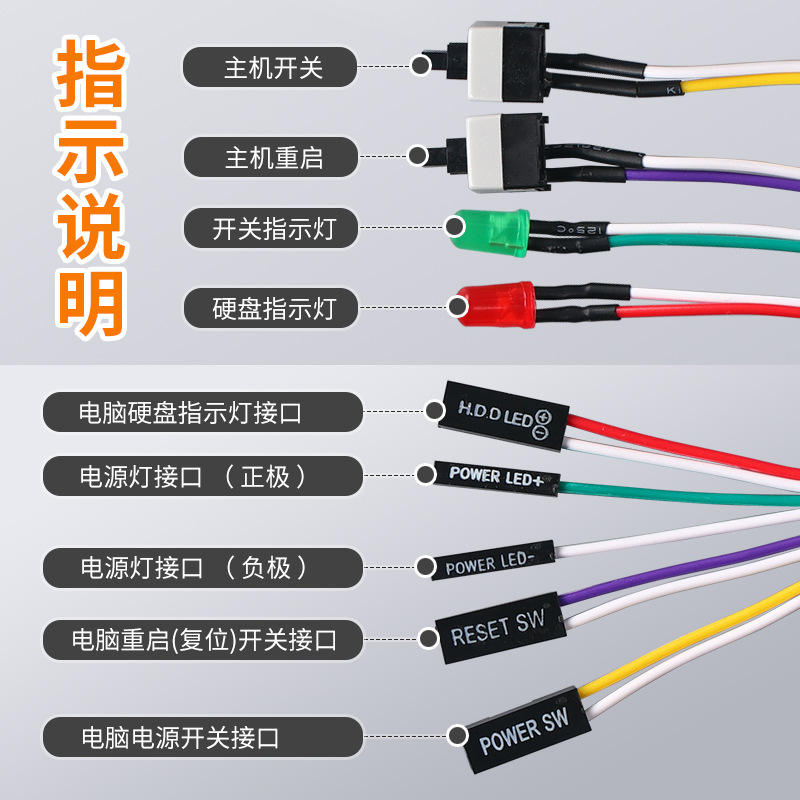 Kailan Power Switch Cable With Led Indicator Light For Desktop Computer Case