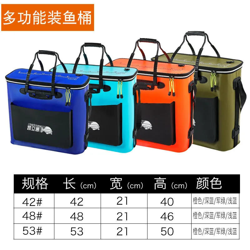 Kailitong EVA Fishing Bucket 30-40L Foldable Waterproof Live Fish Carrier With Side Pocket For Outdoor Fishing