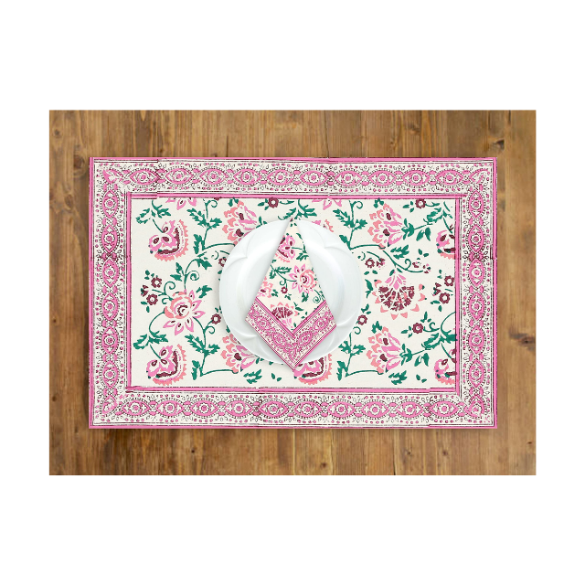 Kalamkari Block Print Baby Pink Floral Stylish Dining Decor 12x18 Inch Handmade Lightweight Embroidered 100% Cotton Table Mats