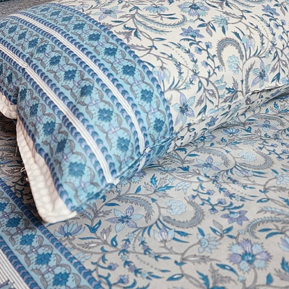 Kalamkari Grey Hand Block Motif Print Queen Pure Cotton Bedsheet Bed Cover Boho Quilt Soft Bedsheet