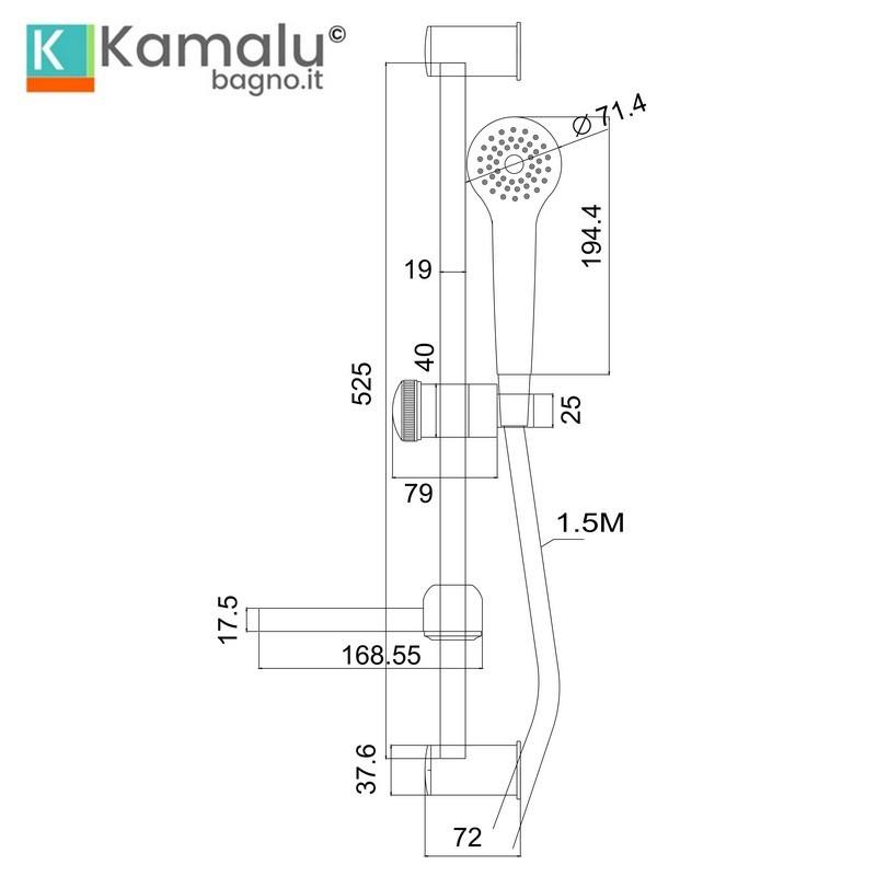 Kamalu K112B Chrome Finish Shower Rail with Hand Shower and Soap Dish Bath Hardware Set
