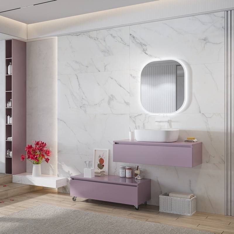 Kamalu KAM-KK1002 Bathroom Set with Casters Cabinet & 100 cm Suspended Cabinet