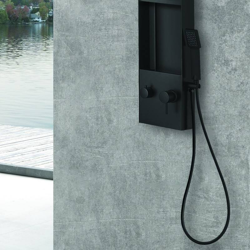 Kamalu KAM-T7100N Black Bathroom Set Shower Panel with Waterfall & Hand Shower Head
