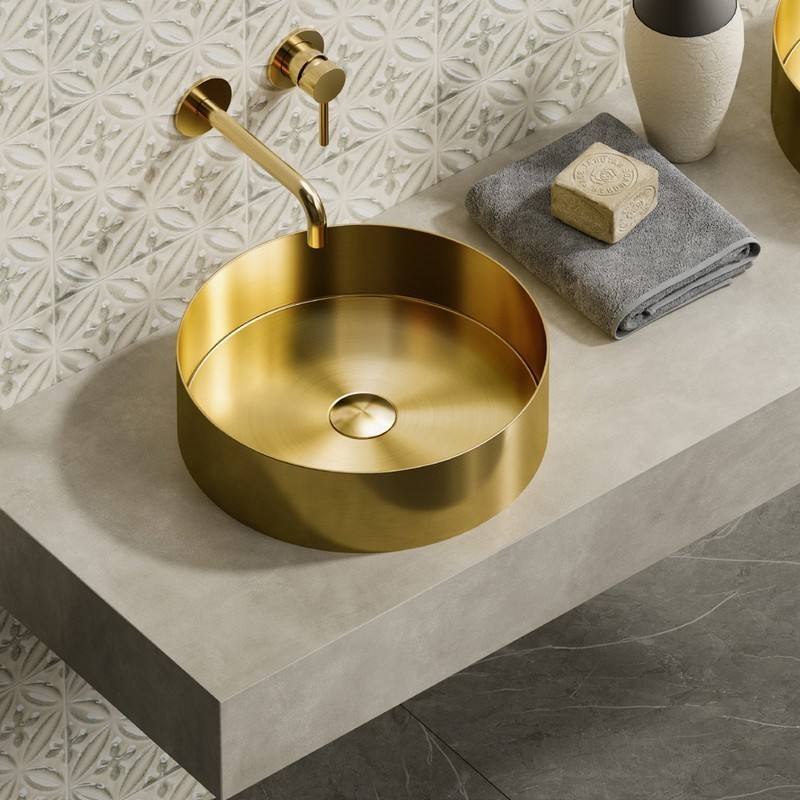 Kamalu KVE-380G Stainless Steel Bathroom Sink Round Countertop Washbasin with Gold Finish OvalBasin