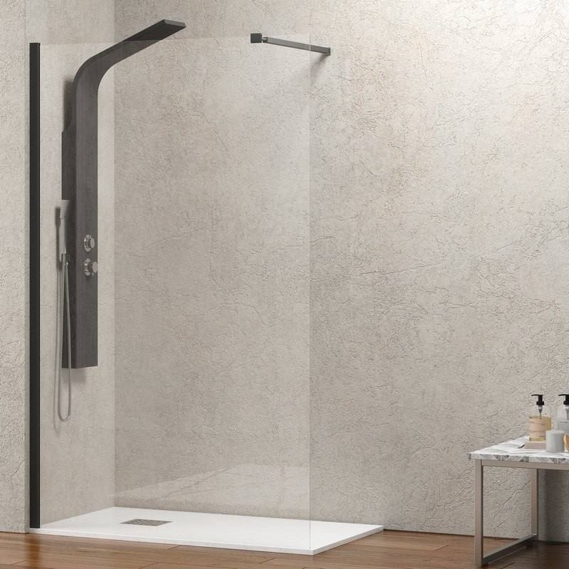 Kamalu KW-100B Modern Walk-in 80-Inch Shower Wall with Matt Black Profile Tempered Glass and Stainless Frame for Hotels