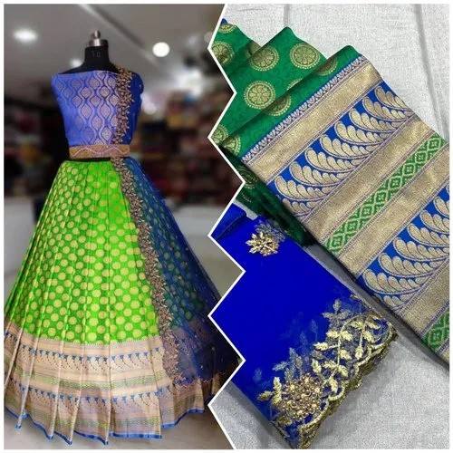 Kanchipuram Traditional Silk Half Saree with Zari Border Free Size for Bridal Wear Party & Wedding
