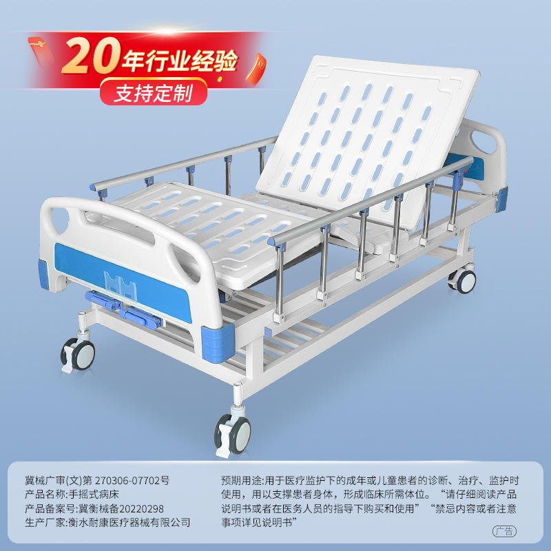 Kangluo Manual Hospital Bed Single Rocking Bed Iron Frame With Side Rails For Hospital Use