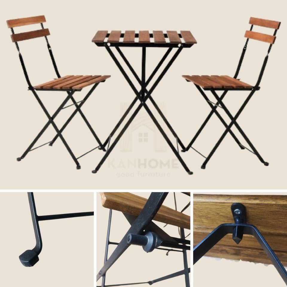 Kanhome Outdoor Acacia Wood Bistro Set Modern Folding Garden Chair Table for Dining Kitchen Factory Price Wholesale From Vietnam