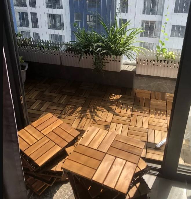 Kanhome T12A1 Modern Acacia Wood Exterior Tiles 19mm Thickness 300x300mm Anti-Slip Outdoor Pool Pathway Decor