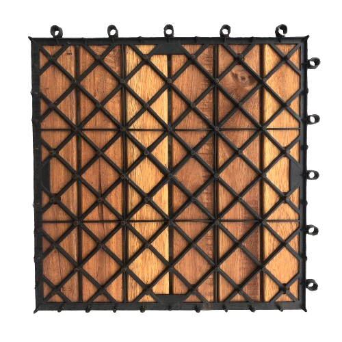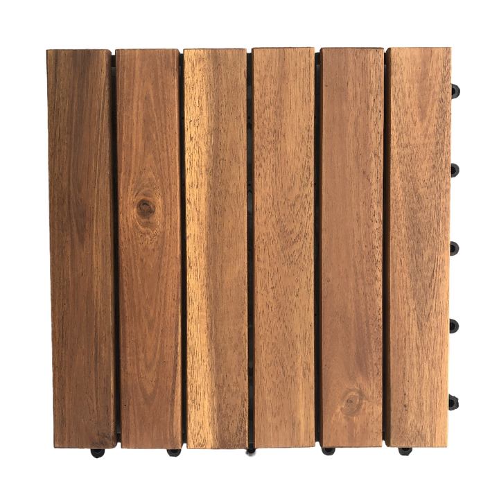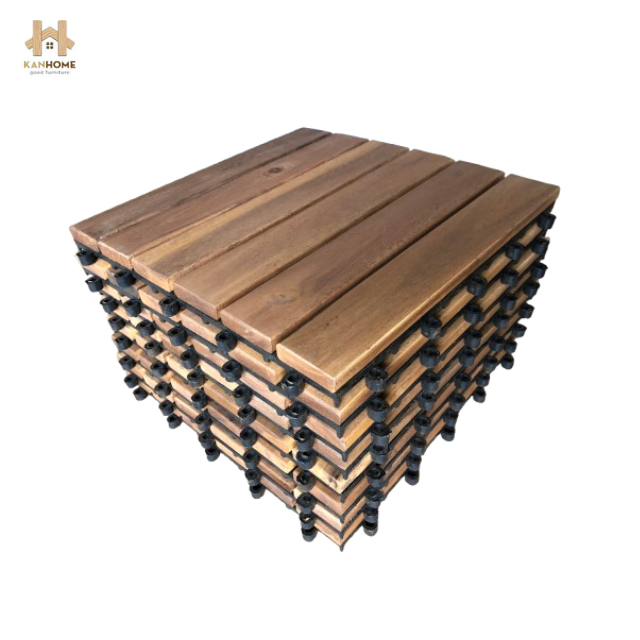 Kanhome T6A2 300x300x24mm Thick Oil Coated Modern Sustainable 6-Slat Acacia Wood Exterior Tiles Anti-Slip Wear-Resistant Outdoor