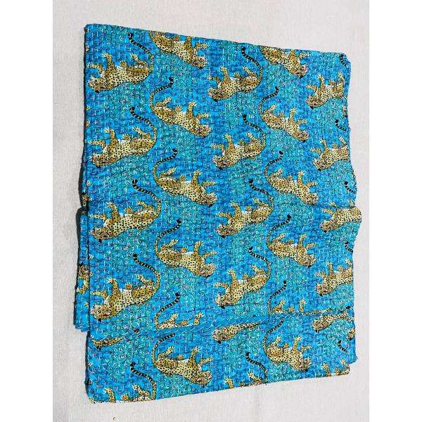 Kantha Cotton Quilt Bedspread Featuring Hand Block Printed Patterns And Layered Stitching For Warmth And Visual Beauty