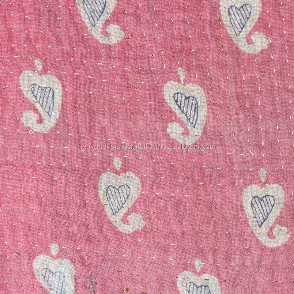 Kantha Quilt Gudari GD045 Handmade Indian Reversible Heavy Throw Cotton Patch Work on Old Sari Blanket
