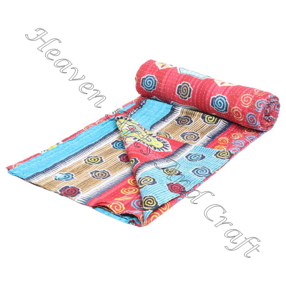 Kantha Quilt Gudari GD078 Kantha Quilt Gudari Indian Reversible Hand Stitched Heavy Throw Old Sari Blanket Patch Work Heavy