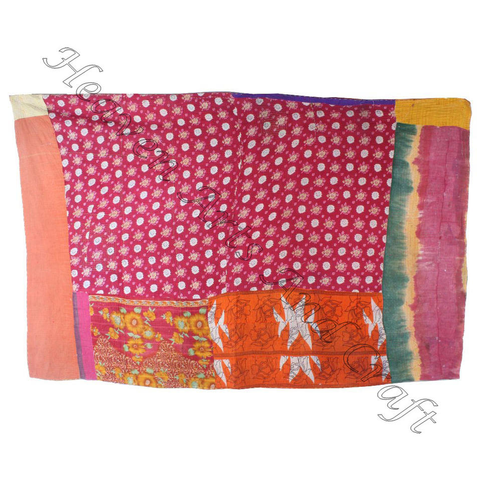 Kantha Quilt Gudari GD081 Kantha Quilt Gudari Hand Stitched Cotton Vintage Quilts India Heavy Throw Sari Heavy 5 to 7 Layer