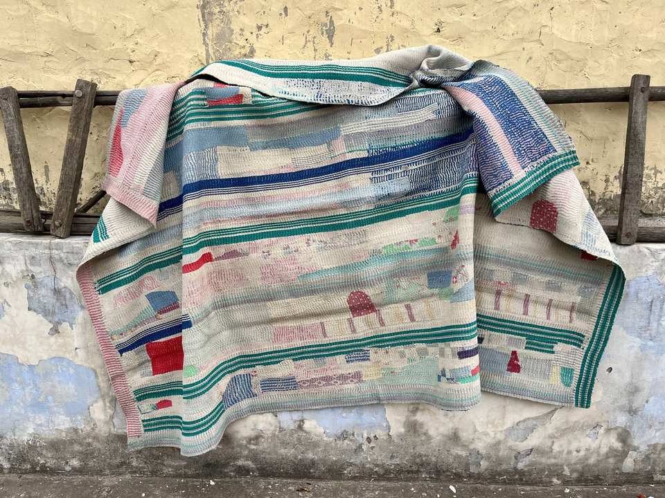 Kantha Quilt Traditional Indian Hand-Stitched Design for Home Decor