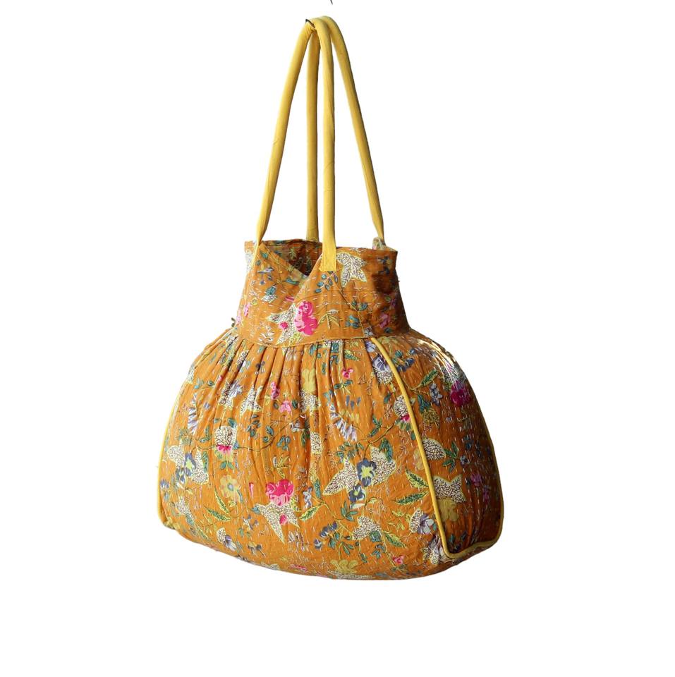 Handmade Block Print Cotton Kantha Tote Bag Regular Vintage Boho Shopping Bag with Two Handles and Hoop Closure