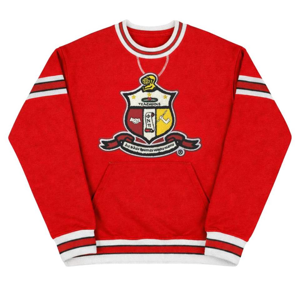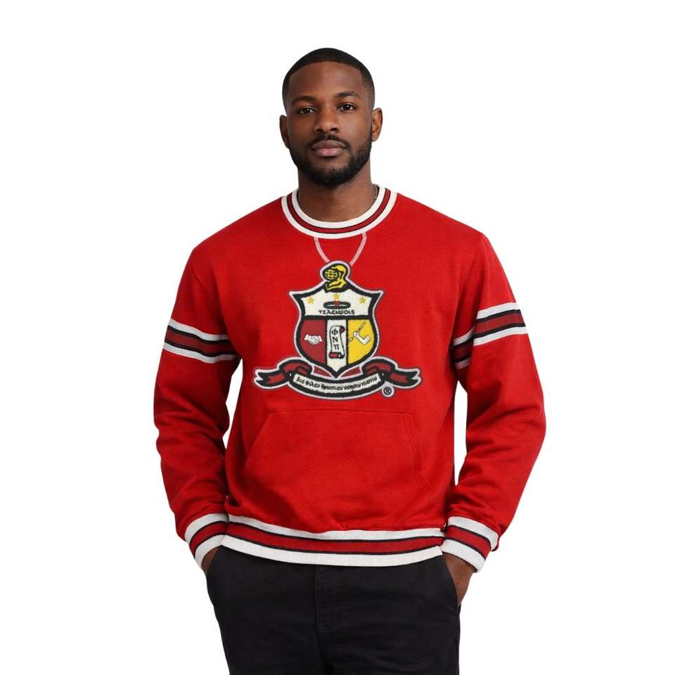 Kappa Alpha Psi Red Crest Stripe Chenille Crewneck True To Size Premium Fleece Embroidered Greek Letter Crest Fraternity Apparel