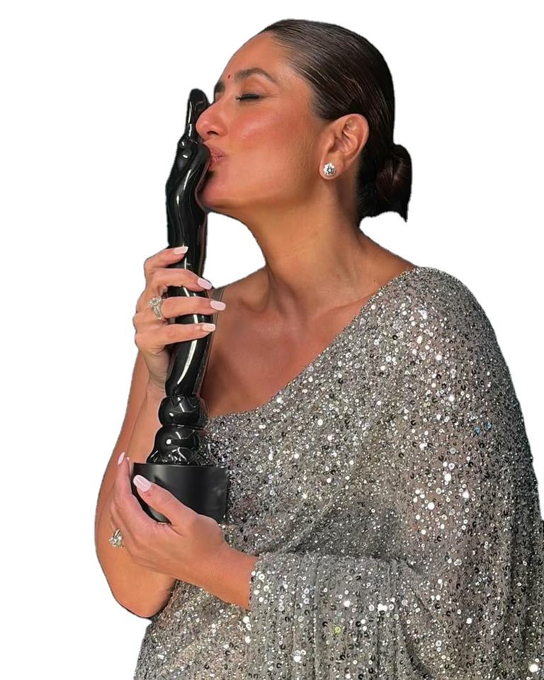 Kareena Kapoor Bollywood Actress Wear Lighting up Bright Color Rich Party& Function Special Georgette Saree With Blouse Silk