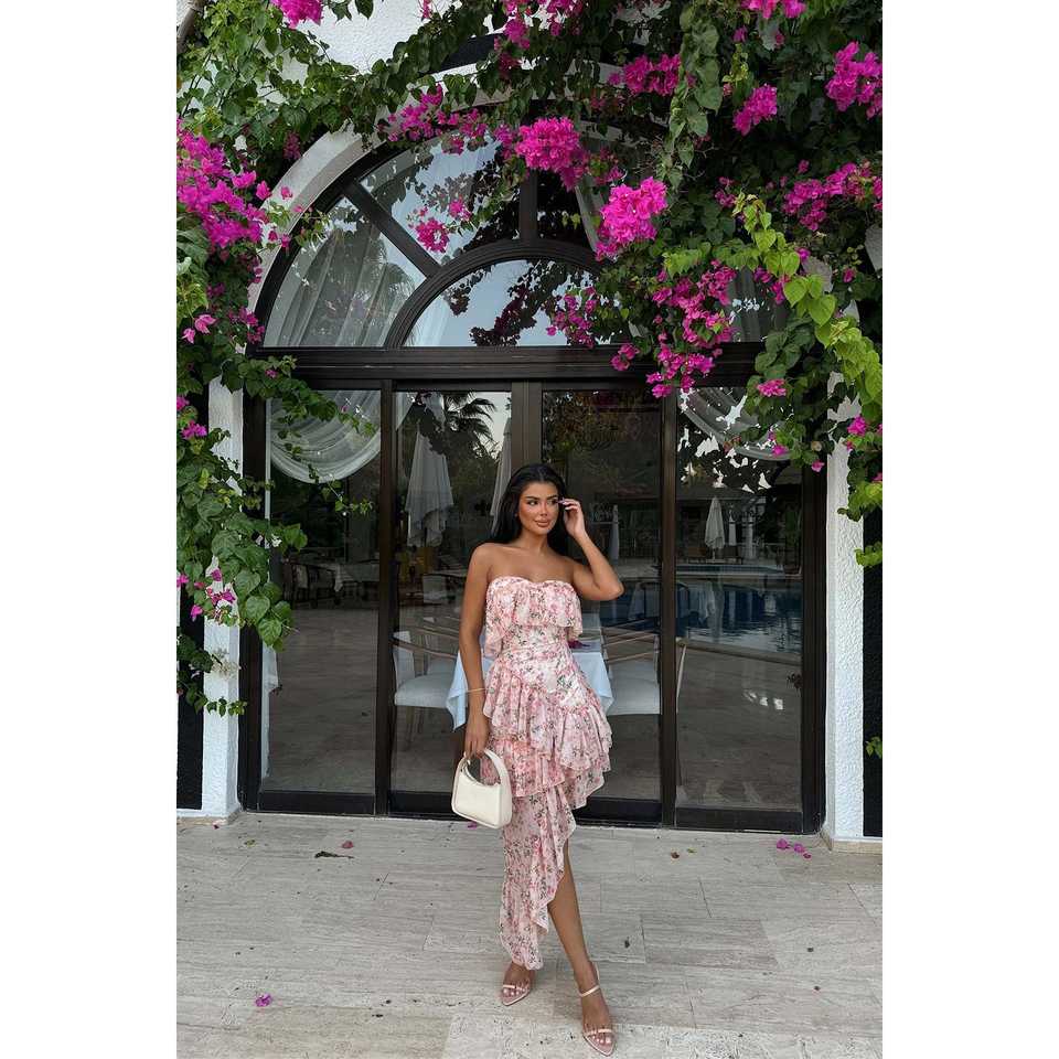Karessa Strapless Powder Pink Floor-Length Hip Skirt Custom Elegant Party for Banquets Evenings Dinners Days Zipper Draped XS