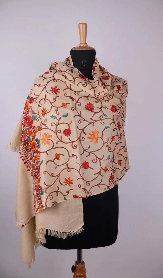 Kashmiri Shawl Soft Polyester Solid Velvet Embroidered Handcrafted Wrap Women Winter Ethnic Wear Elegant Warm