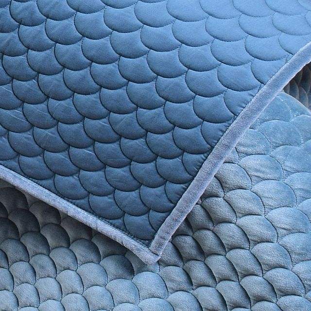 Kaushal Designer Home Decor Handmade Sky Blue King Shell Pattern Quilt Cotton Velvet Bedspread Adults Hotels Patchwork Pattern