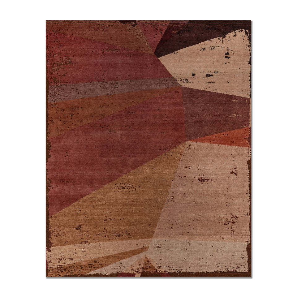 Kavi Hand Knotted Wool & Silk Rug Unfold Ebsk-375(3D) Red & Orange Abstract Pattern for Home Living Room Use
