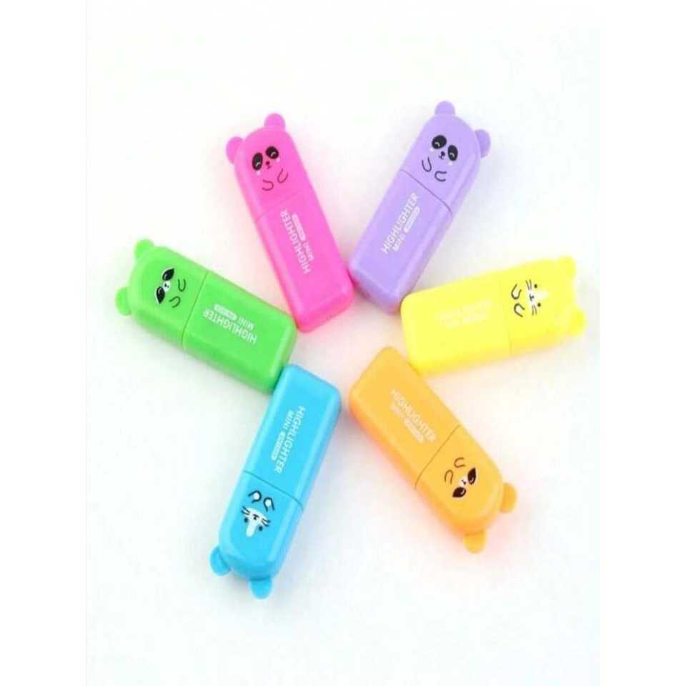 Kawai 6-Piece Mini Highlighter Pen Set Cute Oblique Brush Tip for School and Office Plastic Material for Paper