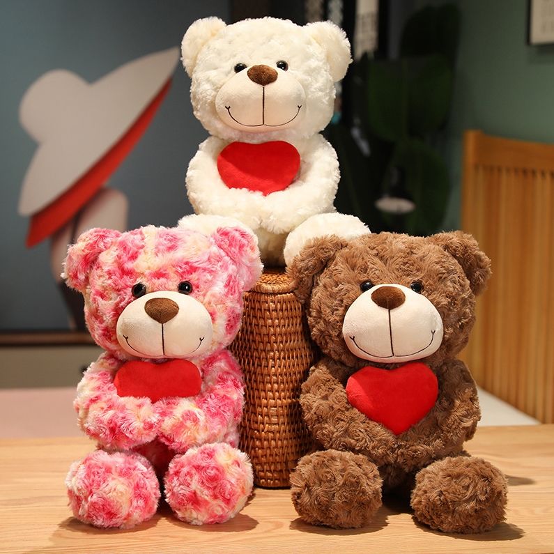 Kawaii 45CM Stuffed Colorful Teddy Bear with Heart Plush Doll Valentines Gift Hugging Sleep Toys