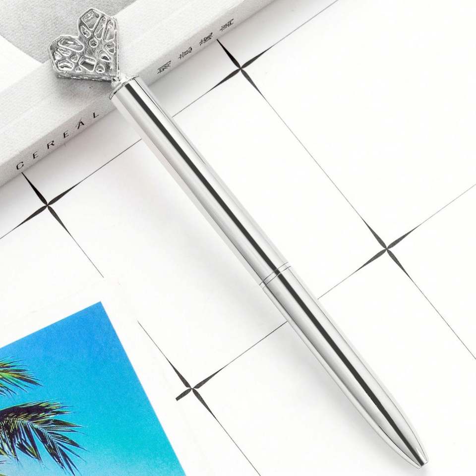 Kawaii Crystal Ballpoint Pen Fashion Girl Heart Shape Large Diamond Metal Pen Material Escolar Bolis Escolares School Supplies