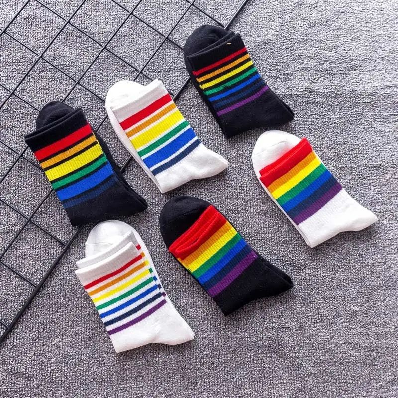 Kawaii Women Streetwear Socks Funny Candy Cute Short Socks Pride Peace Gifts Rainbow Striped Socks