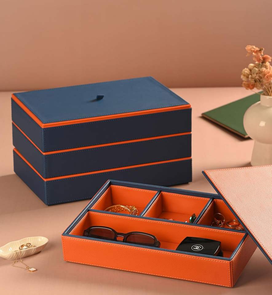 Keep your essentials neatly organized with this elegant Vegan Leather Valet Tray phone wallet keys