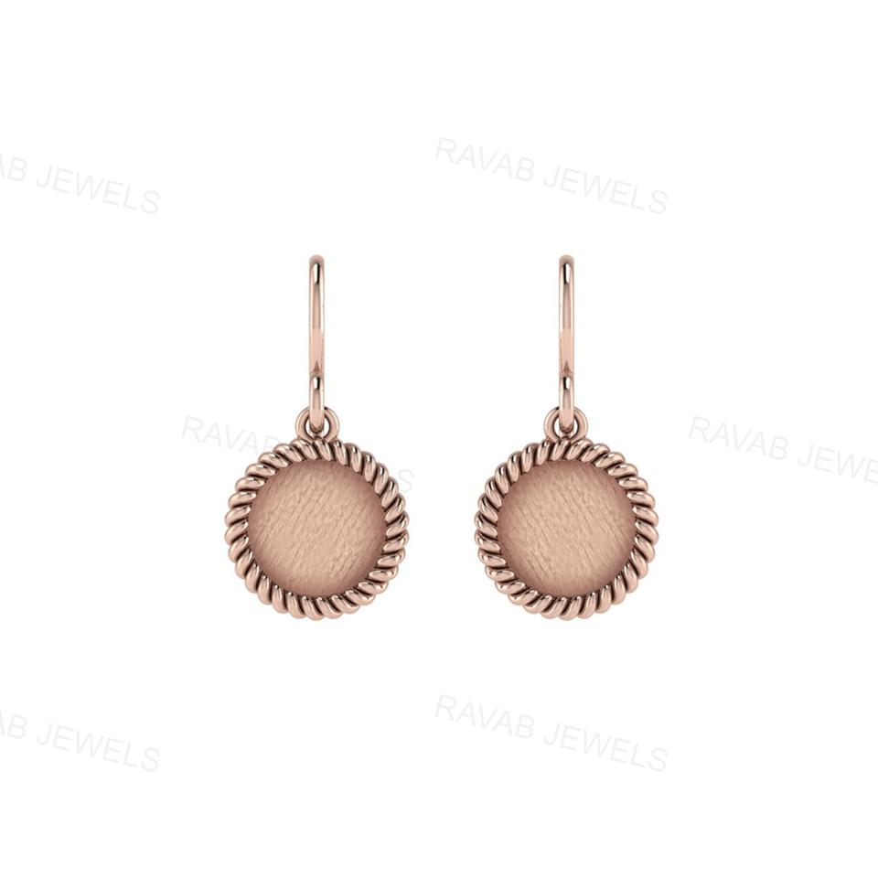 Keepsake Women's 14K Gold Plated 925 Sterling Silver Breastmilk Earrings Rope Design 10mm Bezel Dangle Resin Work Blank Setting