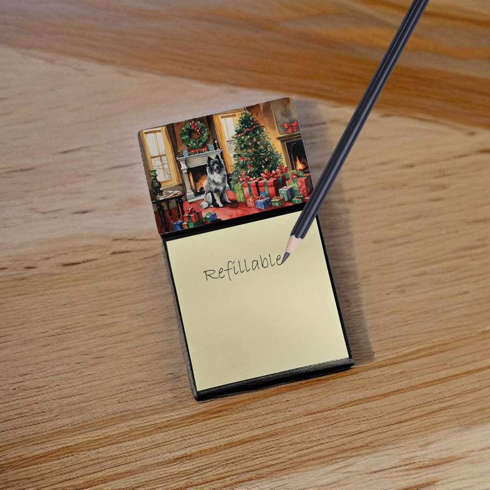 Keeshond Cozy Christmas Sticky Note Holder Self-Sticky Note Pads Refillable Dispenser Blank Memo Pads Accessories Office Decor