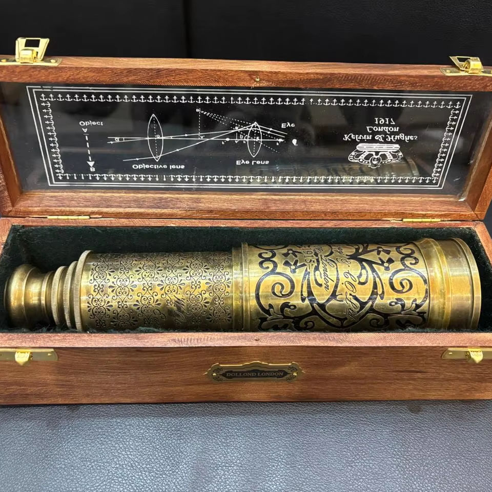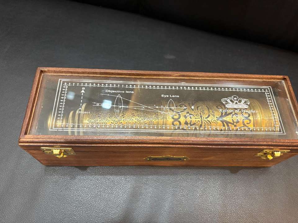 Kelvin & Hughes London Handmade brass nautical 25Inches telescope with wooden box cover fold telescope unique toy gift spyglass