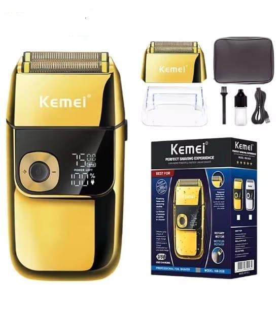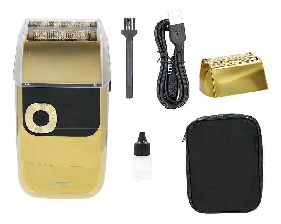 Kemei-2028 Professional Gold Rechargeable Electric Shaver USB Twin Blade Rotary Shaver for Face Portable Waterproof Washable